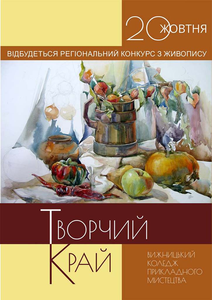 Ми щиро вітаємо вас з початком ІХ Всеукраїнського конкурсу з образотворчого та декоративно-прикладного мистецтва, який проводиться на базі Вижницького коледжу. Конкурсно-освітній захід створений для об’єднання творчих здобутків молоді, покликаний розкривати творчий потенціал та сприяти розвитку автентифікації української культури.