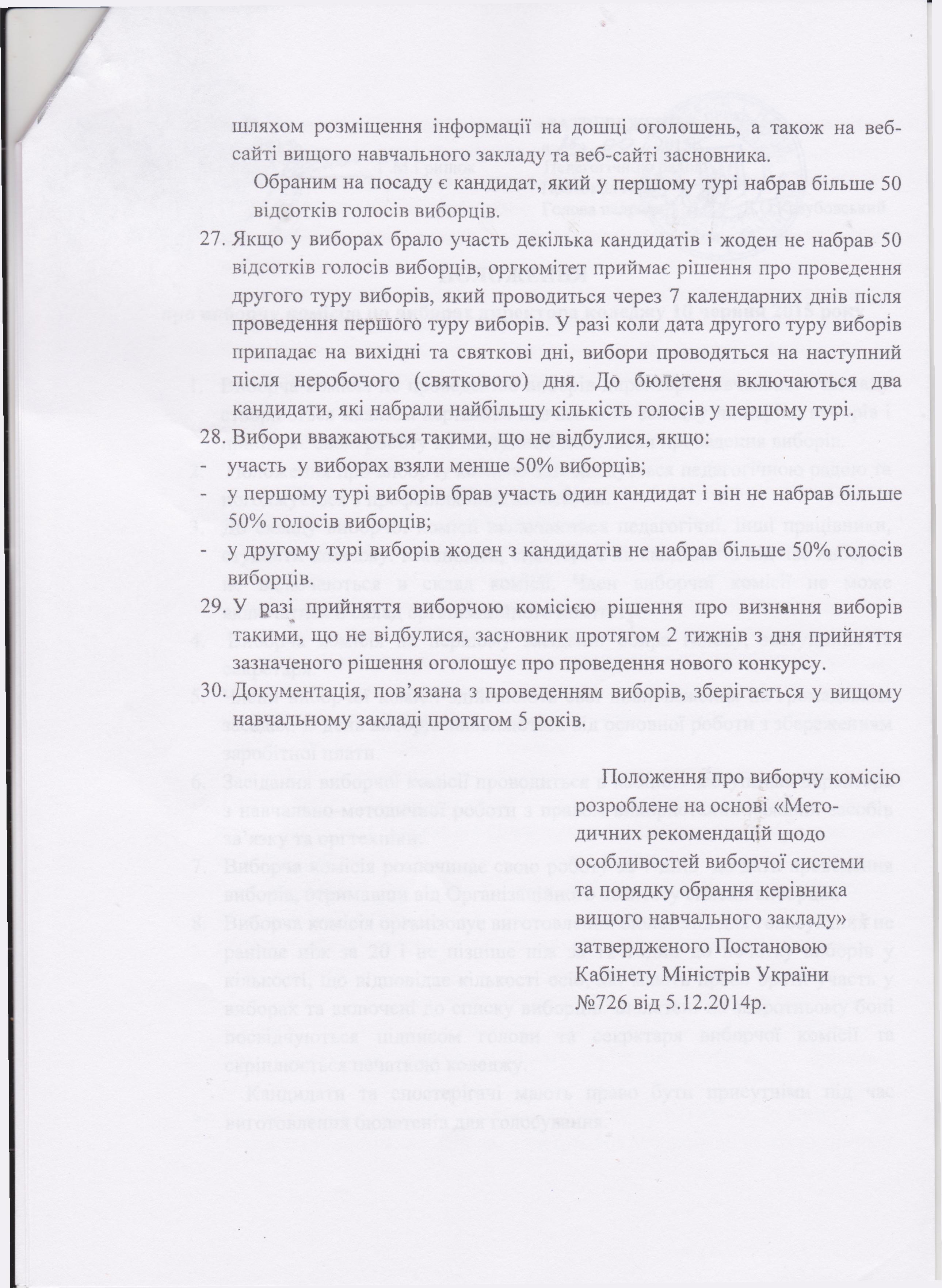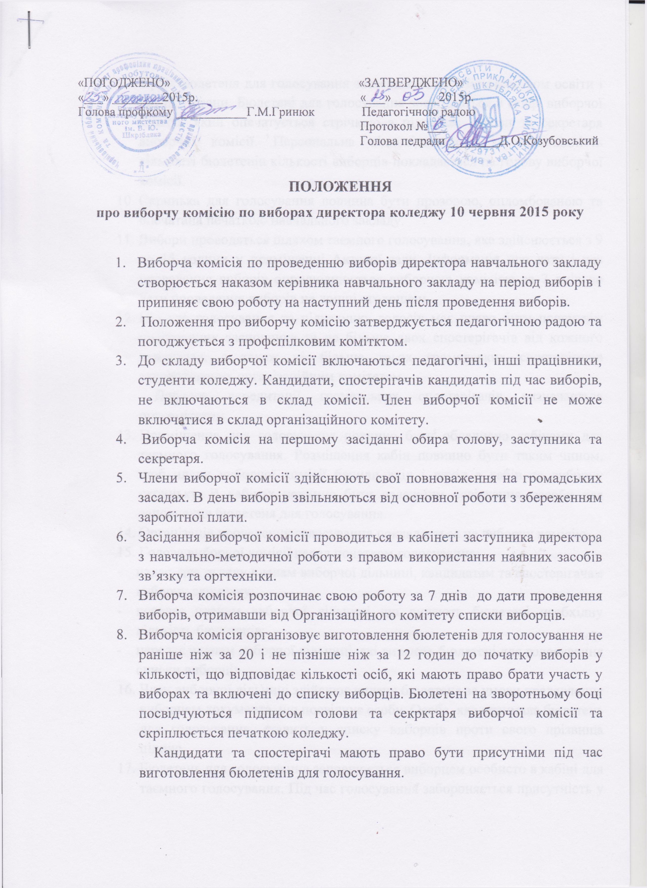 Положення про виборчу комісію по виборах директора Вижницького коледжу 10 червня 2015 року