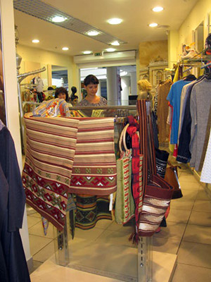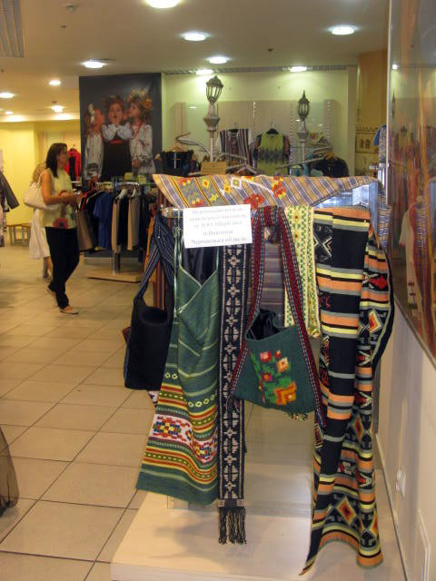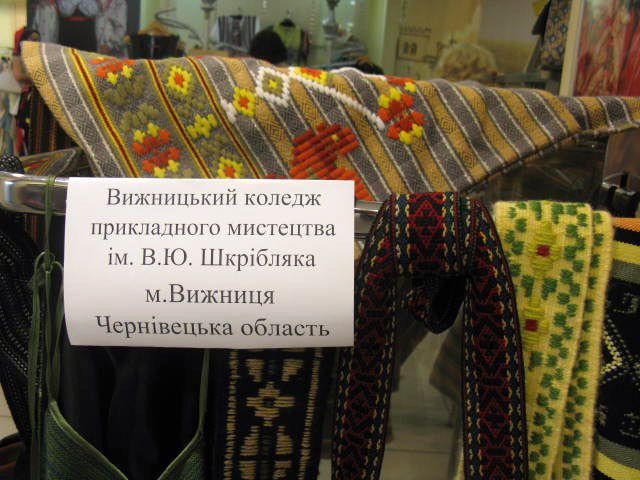 Стенд Вижницького коледжу. Демонстрація робіт наших студентів (пояси, горботки (поясний жіночий одяг), сумки-тайстри)